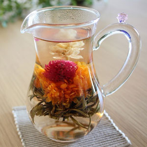お花をジャスミン茶で包んだお茶です。まるでつぼみが花開くような美しさを楽しめます。